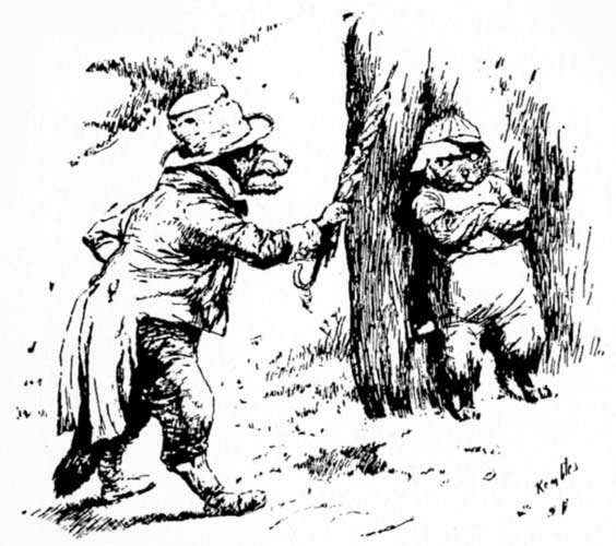 "Well, if he is trailing a rabbit he does not bark continually, but if he is after a fox he does; so you can always tell if you listen carefully."