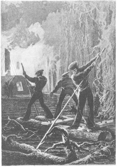 And, indeed, at this moment the crew of the "Saratoga" needed the presence of their captain to cheer them on to further exertion. The red-hot shot of the "Confiance" had twice set fire to the American ship. (p. 565) The raking fire from the "Linnet" had dismounted carronades and long guns one by one, until but a single serviceable gun was left in the starboard battery. A too heavy charge dismounted this piece, and threw it down the hatchway, leaving the frigate without a single gun bearing upon the enemy. In such a plight the hearts of the crew might well fail them. But Macdonough was ready for the emergency. He still had his port broadside untouched, and he at once set to work to swing the ship round so that this battery could be brought to bear. An anchor was let fall astern, and the whole ship's company hauled in on the hawser, swinging the ship slowly around. It was a dangerous manœuvre; for, as the ship veered round, her stern was presented to the "Linnet," affording an opportunity for raking, which the gunners on that plucky little vessel immediately improved. But patience and hard pulling carried the day; and gradually the heavy frigate was turned sufficiently for the after gun to bear, and a gun's crew was at once called from the hawsers to open fire. One by one the guns swung into position, and soon the whole broadside opened with a roar.