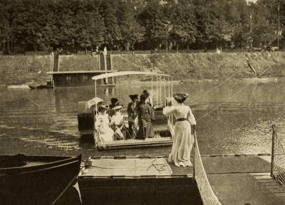 A valuable customer this, and there are other Americans of his class who see the best that Paris has to offer. Some of the more important American dressmakers also place large orders, insist upon exclusive models, and are greeted impressively by the saleswomen; but the most of the crowd buys as little as possible and sees as much as it can, and the saleswomen, fully alive to this fact, make a point of allowing the minor dressmakers to see as little as is consistent with courteous[Pg 228] treatment. Often a group of little dressmakers will form a syndicate to buy one model and will go together to the great establishment. There, being really buyers, they are politely received, and they all take mental notes of every fashion hint that comes their way during the visit. They study Paris fashions, too, wherever they are to be seen, on the streets, in the theatres, at the restaurants; and during their summer visit they perhaps run up to Trouville to see the fashion show there. They have a jolly time as well as a profitable one, and after a few weeks come home to spread French fashion news from Maine to California, and furnish such adaptations of what they have seen as their varying abilities can accomplish.