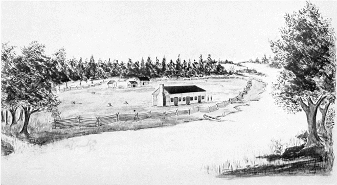 Directly west of the fort, fronting toward the river, was built a double log house, between the two parts of which an open passage was left, though the roof was made continuous over both portions as well as over the open passage. Along the front and rear a veranda extended the full length of the structure. This building was the Agency House, or United States Factory, used for storing goods to be sold to the Indians under Government regulations. For a number of « 30 » years, from 1796 to 1822, the United States supplied goods to the Indian tribes at many places on the frontier in exchange for their furs. In these exchanges the Government's policy was to deal with the Indians on an equitable basis, providing them protection against the rapacity of the traders, many of whom swindled them unmercifully.